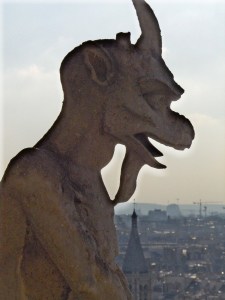 The Notre Dame de Paris is a stunning gothic styled cathedral. Again, I learned of the Notre Dame in college, with it’s ‘flying buttresses”. A buttress helps to support vaulted ceilings but are on the outside of the building. It is seen mostly in gothic architeture and really is quite stunning. A beautiful building that has large stained glass windows, numerous flying buttresses and 400 steps to the top of the bell tower. The stairway to the bell tower is open to the public. I did not realize this until we were about ten people away from climbing them. I was assuming we were lining up to go inside (and was a bit confused as to why we lined up to go inside a church). The original circular staircase slowly winds up to the first level and is a bit dizzying to say the least. Going slowly helps. Gargoyles and fabulous views from this level are great. After catching our breath the guide led us up another set of circular stairs and then up a creaky wooden ladder to see the bell of the cathedral. Victor Hugo helped make it famous with his tale of The Hunchback of Notre Dame. That is one big *ss bell. It took 12 men to ring it and I’m sure they were all deaf from that job. Wow! Coming down from the bell tower but still at the top of the towers I was amazed at the view of Paris. I don’t think I could get tired of any view of Paris.
